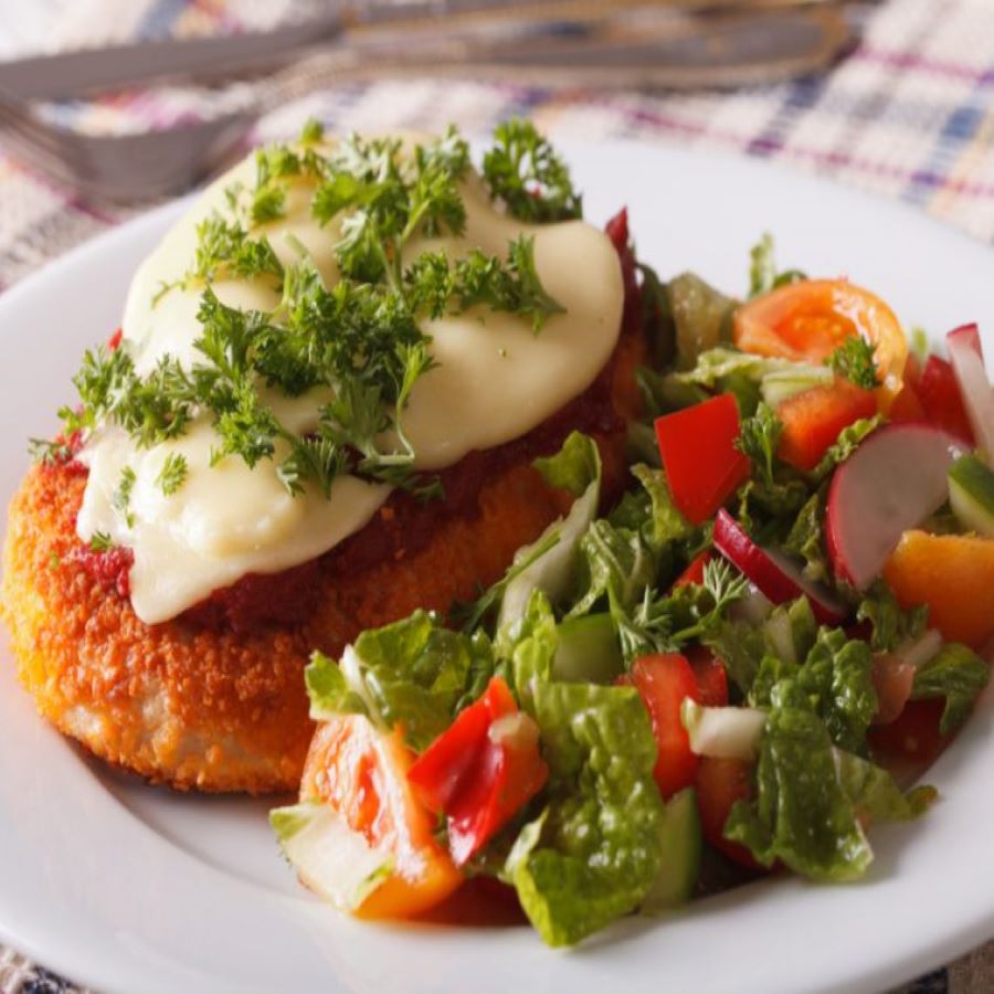 من أشهى الأكلات الإيطالية. تكون من قطع من صدر الدجاج ويضاف عليه صوص الصلصة والجبن الموتزاريلا أو البارميزان أو البروفولون